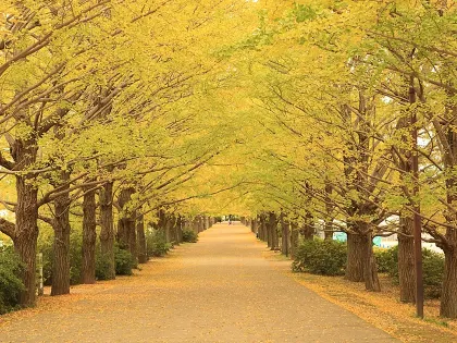 每到秋天,這裡會化身為金黃色隧道,壯麗景色令人讚嘆。園內的 日本庭園 亦種植了約 300 棵楓樹,秋季時一片火紅。除此之外,園內還有欅樹、桂樹、南天燭等闊葉樹紛紛轉色,遊客可一次欣賞多樣的秋日色彩,彷彿全身被秋天氛圍包圍。