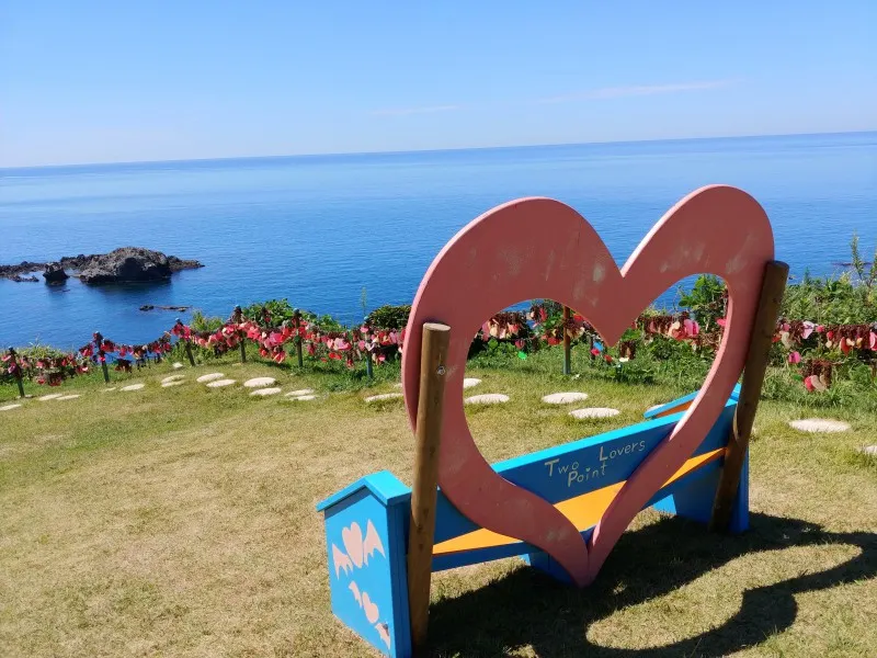 米山福浦八景縣立自然公園的戀人岬是一個俯瞰日本海的絕佳景點,晴天時可以遠眺到佐渡島的美麗景色。這裡以尋找愛情的勝地而聞名,有一個浪漫的傳說:如果情侶在柵欄上貼上一塊牌子,他們的愛情將永遠長存。這個浪漫的儀式吸引了無數情侶前來,讓戀人岬成為見證愛情的最佳場所。