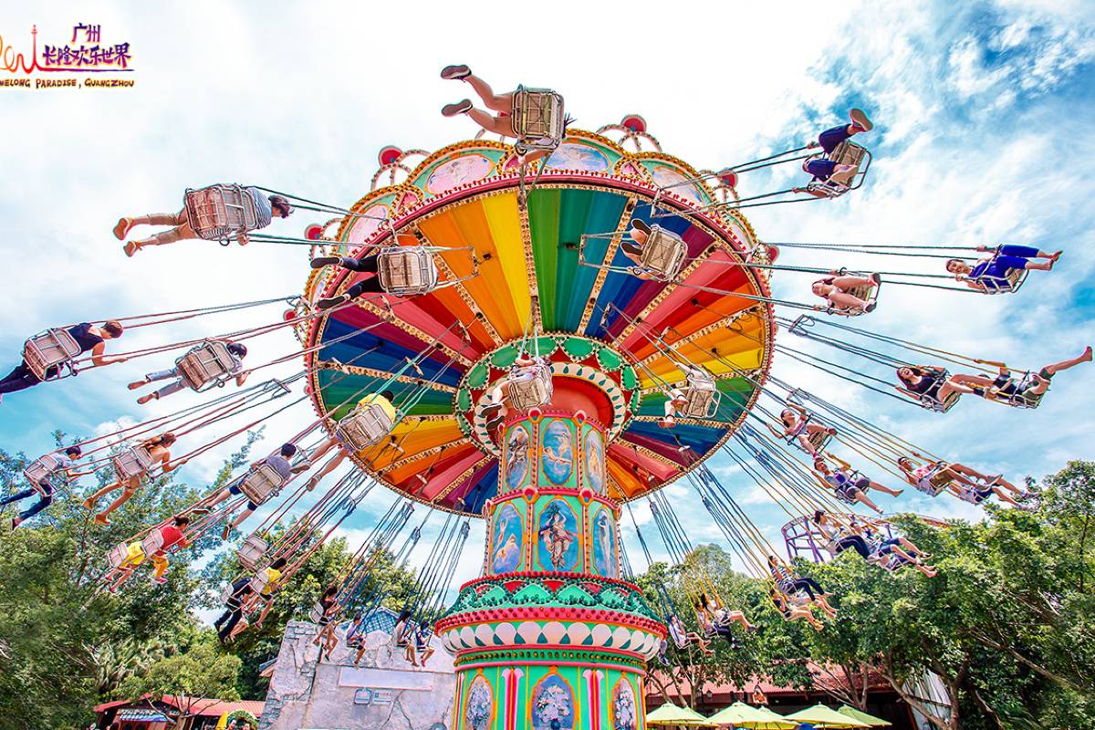 廣州長隆歡樂世界 6 大主題區:叢林探險、律動天地、歡樂嘉年華、感動空間、尖叫地帶、星夢奇園,提供超過 70 款機動遊戲和娛樂設施。