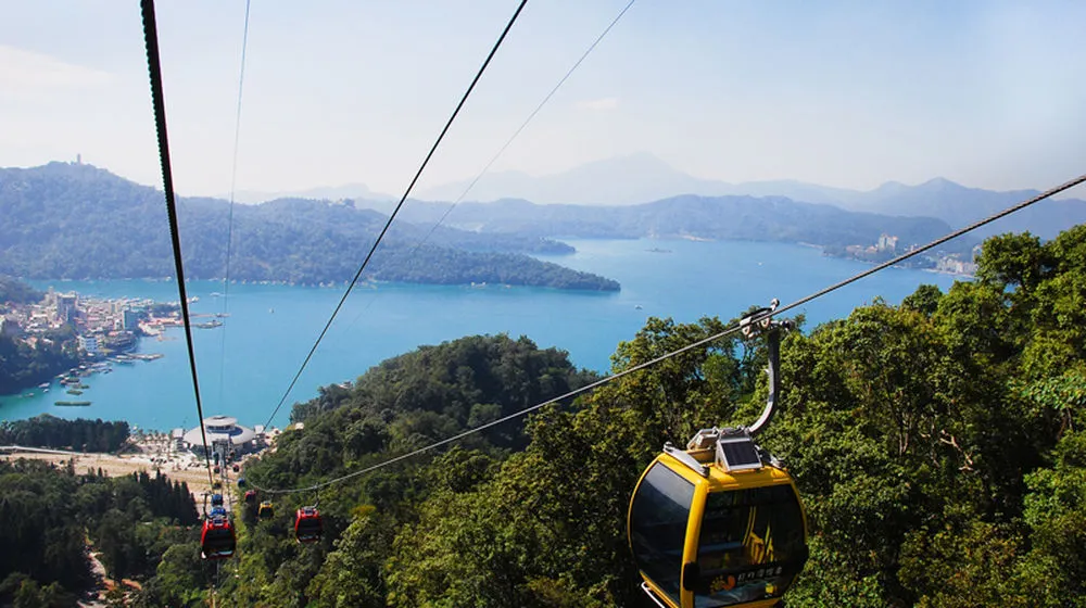 日月潭纜車全長 1.8 公里,連接日月潭伊達邵老街和九族文化村。全程 7 分鐘,更可選擇透明的水晶車廂,從空中俯瞰高山盆地和日月潭的壯麗景色。