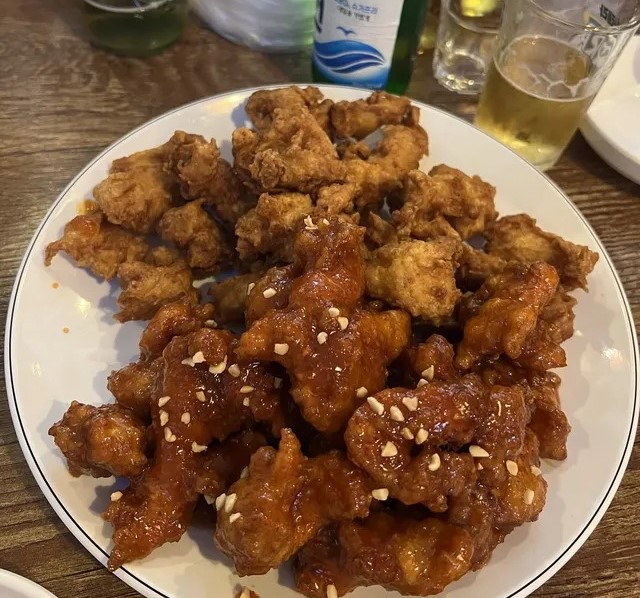 韓國的炸雞和啤酒組合在釜山同樣受歡迎,特別是在海灘附近的餐廳,可以邊吃炸雞邊欣賞海景。