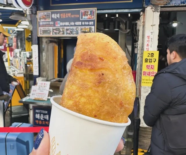 釜山糖餅是必吃小吃,釜山糖餅會加入許多堅果,增加口感,亦降低油膩感,與其他的糖餅不一樣。
