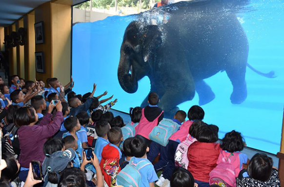△ 觀賞大象游泳表演