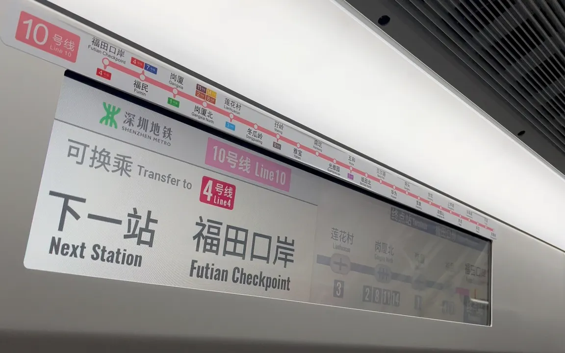 由深圳前往福田口岸可以搭乘深圳地鐵 4 號線或 10 號線至福田口岸站,出閘之後直達福田口岸聯檢大樓地下一層。