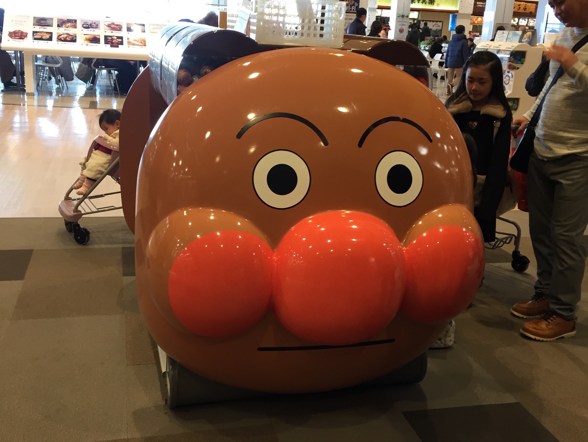 Right downstairs from the front desk is the AMU shopping mall. Inside the station, there's Shin-Shin ramen and a FamilyMart. You can walk via a covered walkway to Uomachi Shopping Street and the adjacent mall with Zara, as well as the mall with the yellow anime bear head – no need to get wet in the rain.