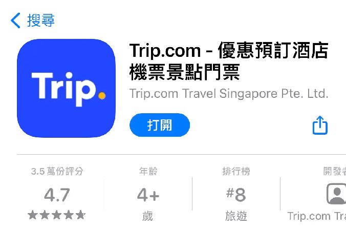 - 在您的手機應用商店(App Store 或 Google Play)搜尋並下載「Trip.com App」。