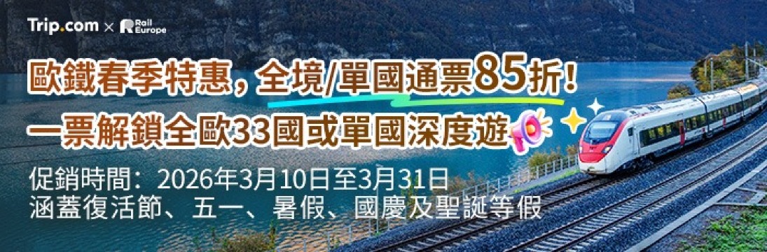 - 歐鐵優惠:Trip.com App 5% 優惠;歐洲火車新用戶優惠代碼