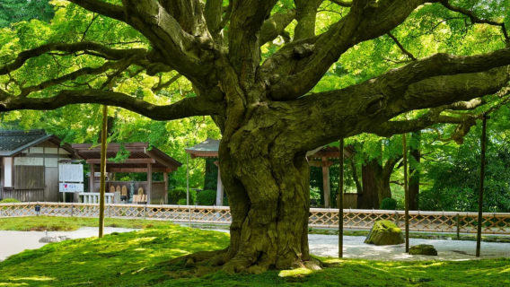 這是一座精緻的池泉回遊式日式庭園,原為博多商人的別墅。雖然面積不大,但處處體現日式園林的靜謐之美。園內的茶室「樂水庵」還能體驗傳統抹茶。