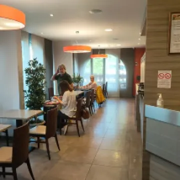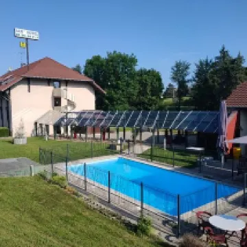 Nous avons passé une nuit agréable et calme. Les chambres sont propres et spacieuses, vous pouvez prendre l’apéro au rez-de-chaussée pour pas cher. L’eau de la piscine est à température agréable. Mention spéciale au monsieur de l’accueil très gentil. Nous recommandons l’hôtel !