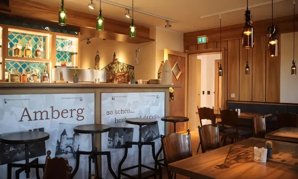 Das Hotel Brunner liegt gegenüber dem Bahnhof von Amberg, der mit einer 4-spurigen Straße getrennt ist. In wenigen Gehminuten gelangt an in die Altstadt. Es lohnt sich eine Stadtführung zu buchen, um das eine oder andere hinter den Kulissen zu sehen und zu erfahren. Das Hotel und die Zimmer sind zwar nicht auf dem neuesten Stand, aber sauber und man wird mit einer großen Herzlichkeit empfangen. Die Frage nach einer Meldebestätigung sowie das digitale Ausfüllen des Formulars löste Stirnrunzeln aus, da diese Verpflichtung bereits seit Anfang dieses Jahres entfallen ist. Aber der Chef wolle dies so, hieß es. Was mit den Daten passiert und warum dies noch so weiterhin erfolge, blieb unbeantwortet. Das Zimmer hatte ein kleines, schlauchartiges Bad und das Mobiliar war nicht mehr aktuell. Dafür war es ruhig, es sei denn, man hatte die Fenster geöffnet. Dann drang etwas von dem Innenhof des Teufelsbäck nach oben oder Straßenlärm von übermotorisierten Fahrzeugen, wahrscheinlich von übermotivierten jungen Männern im Testesteronrausch. Teufelsbäck? Der ungewöhnliche Name steht für ein kleines Eventrestaurant mit sehr viel Stil und Pfiff. Die Bedienung ist freundlich und aufmerksam, die Speisen und die Atmosphäre sowohl innen als auch außen sehr ansprechend. Ab und zu gibt es hier verschiedene Live Events und auf jeden Fall eine klare Empfehlung.