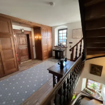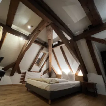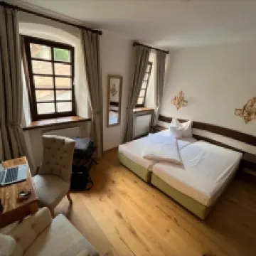 Das Hotel ist schön gelegen, allerdings sehr weit von Amorbach entfernt. Unser Zimmer war im 2ten Stock und nur über eine enge steile Treppe erreichbar, für ältere, gehbehinderte Personen äußerst schwierig. Das Zimmer hatte zu 2/3 schräge Wände, das Bett erreichte man nur in extrem gebückter Haltung, beim Bewegen im Zimmer stieß man sich ständig den Kopf.Darauf müsste hingewiesen werden, der Zimmerpreis war dafür zu hoch. Das Abendessen sowie das Frühstück waren hervorragend, der Service aufmerksam und sehr freundlich. Insgesamt eine schöne Adresse, für Personen mit eingeschränkter Bewegung ist es, zumindest teilweise, weniger geeignet