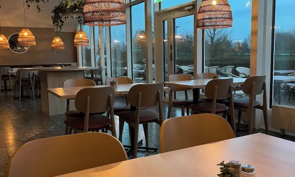 Hotellets restaurant blev vi MEGET skuffede over. Vi bestilte en burger med fritter og en cæsarsalat. Fritterne var at best lune. Salaten indeholdt små isstykker. Ved henvendelse til personalet blev vi tilbudt en ny salat. Vi ventede over 20 minutter på salaten. Da vi ikke gad vente mere, gik vi op til baren for at klage til personalet, for andre der havde sendt mad tilbage efter os, fik deres ny mad ret hurtigt. Vi ventede over 10 minutter på hende, vi havde gjort opmærksom på fejlen til, for hun skulle lige bestille varer. Da hun endelig kom, og vi fremsagde vores klage, var hendes svar flere gange ‘hvad vil I have, jeg skal gøre ved det’. Pludselig vendte hun ryggen til os og gik. Og så gik vi også uden at betale.