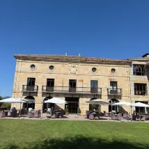 Pasamos una estancia muy tranquila en el Parador de Argómaniz. Todo ha sido correcto: buen trato, instalaciones cuidadas y un ambiente perfecto para desconectar. El edificio es un antiguo palacio renacentista, restaurado con mucho gusto. Conserva elementos originales como los techos de madera y ofrece unas bonitas vistas del paisaje alavés. Muy recomendable si buscas descanso en un entorno con encanto e historia.