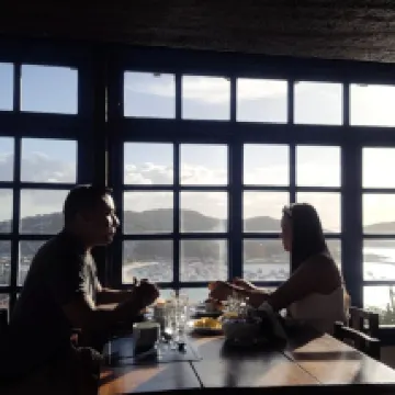 Lugar maravilhoso. A vista é demais. Dá para ver toda Arraial quase. Chegamos e fomos muito bem recepcionados pelo Sr. Carlos. O café é bom. Não é chique, mas é muito caprichado e gostoso. O único motivo de nós não darmos a quinta estrela foi a questão da Internet nos quartos que no primeiro e segundo dia simplesmente não funcionava. Fui avisar o Sr. Carlos e o mesmo me disse que era comum mesmo que a internet dos quartos não fosse tão boa quanto as das áreas, mas que ele falaria com um rapaz no outro dia para reiniciar o modem e tentar amenizar nosso problema. Achamos essa atitude uma demonstração de atenção. No outro dia outra pessoa estava no lugar do Sr. Carlos, a Sra. Daiane: esta, quando mencionei que o que havia acontecido, nem me deixou terminar a frase e já disse "NOS QUARTOS NÃO TEM INTERNET" "...A GENTE FALA QUE NÃO TEM". Nesse momento ficamos bem chateados, pois essa informação não é clara na reserva. Para completar, a colaboradora disse que o Sr. Carlos estava errado e que ele não era novo e ainda reclamou mais dele para nós. Achei pouquíssimo profissional da parte dela isso, mas seguimos para nossos passeios. Na volta ,o Sr. Carlos estava na recepção e, de forma muito educada e prestativa, disse que havia reiniciado o modem e que era para testarmos. Chegamos no quarto e tinha Internet. Inclusive estou usando para fazer essa avaliação hehe.