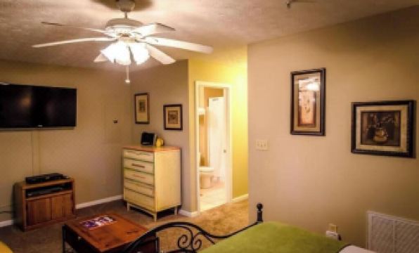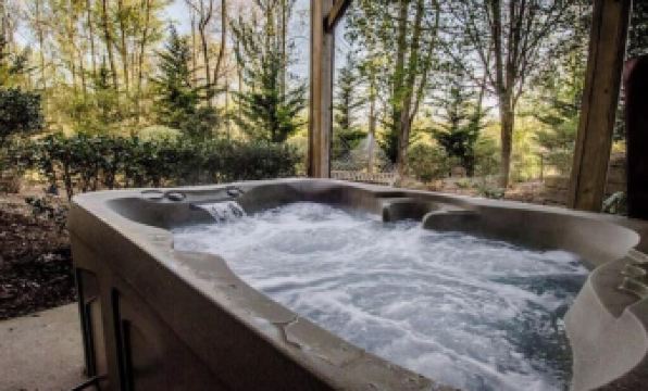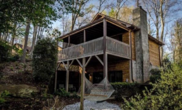 Sophia’s Sapphire is one of our Asheville cabin rentals w/hot tub that offers multiple amenities and beautiful surroundings. Rediscover what a vacation is supposed to look like by enjoying a quiet afternoon lounging in a hammock, fishing, hiking, soaking in your hot tub, or simply enjoying the sights and sounds of nature by strolling through our gardens and ever-refreshing water fountains. This cozy one-bedroom cabin offers a king-sized bed, 1.5 baths. Discounted monthly rates are available.