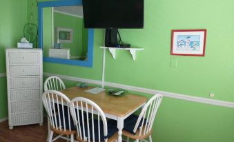 What are you waiting for? Go ahead and reserve this beautiful studio condo today. Bright and nicely decorated open concept unit has everything you need for a great vacation stay. Equipped with a nice kitchen area that has a full-size stove and fridge, plenty of cookware and dinnerware for those who prefer to cook. A new queen mattress and box spring for your sleeping comfort and a pull-out sofa bed for the kids or up to two more adults. Internet and 43" smart cable tv are included. Both the large swimming pool and baby wading pool are right in front of this condo, just a few feet from your door. The area behind the complex is a wonderful place to get competitive in a game of corn hole or let the kids "burn some energy."