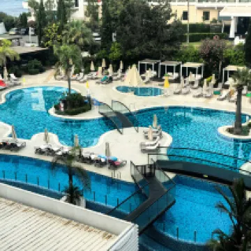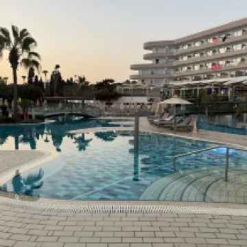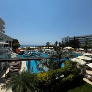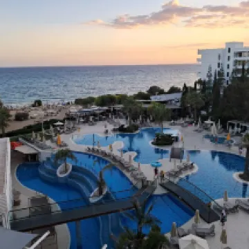 Hotel molto bello chiedere camere vista mare che dispone di una camera grande con terrazzo molto ampio e vista mozzafiato ,struttura con piscine sia per grandi che piccoli però merita il mare che adiacente cristallino con spiaggia lunga bellissima per fare lunghe camminate e vedere tramonti ! Si pagano i due lettini con ombrellone solo 7,50 consiglio tutto compreso con pasti a buffe con unica pecca pochi assortimenti di primi,personale di tutta la struttura gentile sempre disponibile . Unica nota negativa prenotazione con alpitur e non avere una assistenza in struttura ma solo un numero di cell questo non si é capito come mai ! Noi abbiamo fatto una settimana senza che nessuno alpitur ci chiede se andava tutto bene ,e sentito anche che sulle escursioni non erano presenti ! Spettacoli serali bocciati solo piano bar e struttura per famiglie pieno zeppo di bambini troppi ! Del resto devo dire che Cipro a Napa veramente merita anche per la vita notturna con locali top e negozi e taverne molto belle ! Hotel vicino a centro e con spiaggia più bella che abbiamo visitato !