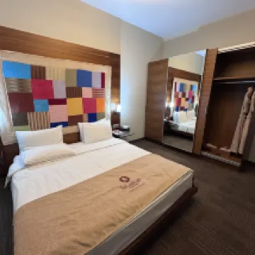 So the check in was very smooth , the guy at reception Emin was really helpful, upgraded us to an apartment . The rooms were huge in size , location was decent , the down side was that the hotel is baiscally a business center not really a hotel entrance is like a office building and only two floors of hotel rooms and one floor for lobby and bar , really run down rooms and very average breakfast , the breakfast spread was very minimal .it didn’t give a luxury vibe and in my opinion this property should be rated as 3 star
