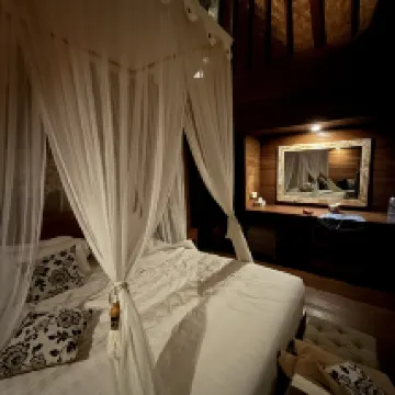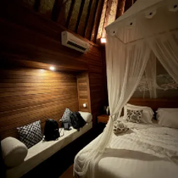 Не рекомендую данный отель к бронированию! Вилла с комарами, бегал какой-то летающий таракан и пауки. По крыше ночью скакал наверно геккон, просыпались несколько раз, думали печенье ест, шуршит упаковкой. В ванной пол очень грязный, напор воды в душе слабый из-за засорившейся и старой лейки. Вилла сама по себе старая, висит паутина, пыль везде, а свет настолько тусклый, что практически не видно то, что вилла нуждается в уборке. Бассейн тоже грязный, никто не купается.