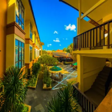 Great location, 10 minute walk to Kartika Plaza and 20 minutes walk to Kuta Square and or the beach. The resort is literally across the road from 4 minimarts, 2 ATM's, an official Money Changer, a laundry and dozen or so older style Cafes/Warungs or modern restaurants. The resort is close to the airport so a good place long term or for one night