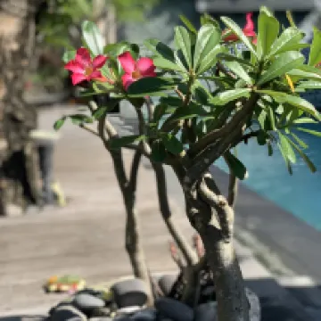 Mooi, schoon en sfeervol klein hotel in Balinese stijl. Goed a la carte ontbijt. Vriendelijk personeel. Mooie ruime kamers met een grote, deels open, badkamer. Leuk zwembad gelegen in een keurig onderhouden tuin. Als je wilt zonnen stelt strand in de buurt niet veel voor. Wij zijn hier 2 nachten geweest en als rust/tussenstop was het prima!