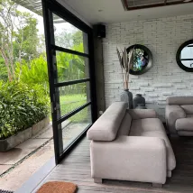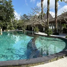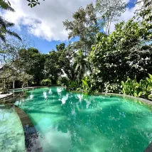 Прекрасная вилла для пребывания большой компанией. На территории есть большой бассейн и 6 вилл а так же 20 номеров , нам все очень понравилось. Персонал очень дружелюбный и готовит вкусную еду . Есть метр для занятий йогой и медитаций. Место в джунглях, достаточно Тихое