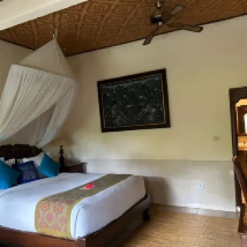 多麼迷人的小酒店!位於烏布中心。傳統的峇裡島風格客房,配有天蓬床和蚊帳。我的浴室甚至養了一條金魚,還有一隻我給它起了個綽號叫「菲爾」的青蛙。員工服務非常棒。每天下午5點提供茶點。早餐很棒。我唯一的抱怨是:進出房間的台階太多,而且床有點硬(對我來說不太合適)。下次還會住這裡!