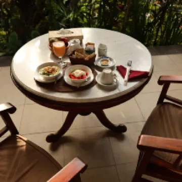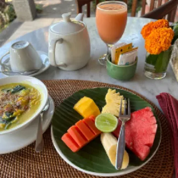 烏布中部最令人驚嘆的綠洲。遠離繁忙的道路,這裡寧靜而美麗。令人驚嘆的建築和房間設計,美麗的游泳池和我見過的最友好的工作人員。這個地方挑不出什麼毛病,強烈推薦它給那些想要在烏布炎熱的天氣裡住一家美麗的精品酒店的人。早餐已下架,並在我們華麗的陽台上供應。