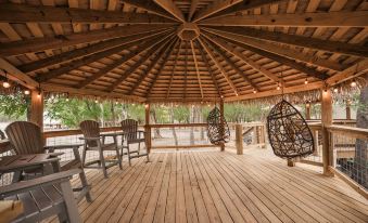 走出戶外,來到寬敞的茅草涼亭下,您會發現一個令人愉悅的戶外休閑娛樂區。清晨,您可以一邊品嚐咖啡,一邊聆聽鳥兒的鳴叫,在舒適的藤編吊椅上放鬆身心,或在阿迪朗達克吧枱椅上悠閑地倚靠!夜晚,露台周圍的串燈營造出寧靜祥和的氛圍,您可以與家人朋友小酌一杯,放鬆身心!