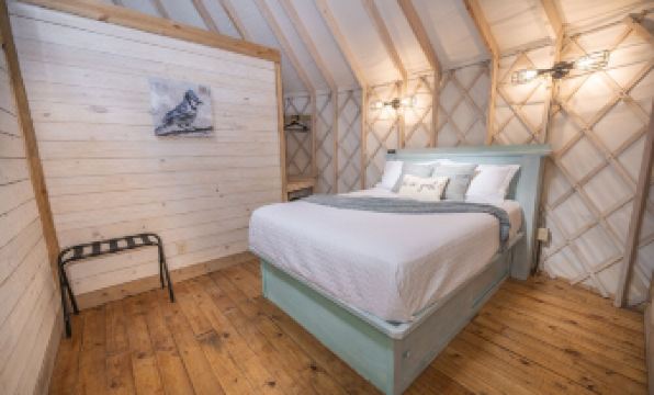 “藍鳥”蒙古包溫馨舒適,高挑的屋頂展現了蒙古包設計中美麗的木質結構和充足的自然光線。開放式的起居空間配備一張寬敞舒適的雙人沙发床和一台電視(僅限使用個人賬戶觀看流媒體,不提供有線電視)。我們的蒙古包設計旨在提供現代生活的便利設施(無線網絡、浴室、舒適的床鋪、寬敞的小廚房、空調和暖氣),同時又能讓您與自然保持簡單的親密聯繫。