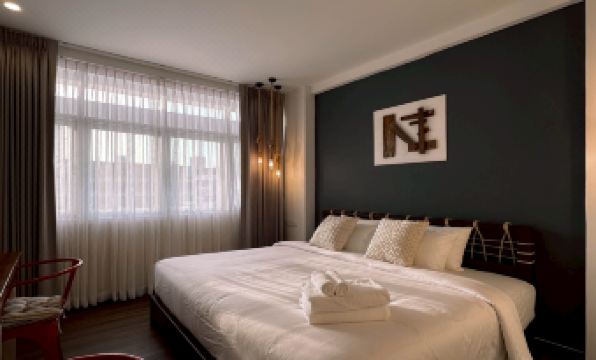ตึกมีประมาณ 5 ชั้น มีลิฟต์ บรรยากาศดี เงีบสงบ คนไม่พลุกพล่าน แต่ละชั้นมีห้องแค่ 2-3ห้อง เป็นตึกเก่าที่รีโนเวทเป็นที่พัก เปิดมายังไม่ถึงปี เป็นฟีลโรงแรมกึ่งๆโฮสเทล ด้านล่างของตึกเป็นคาเฟ่ ที่นี่ไม่มีฟ้อนรีเซปชั่น