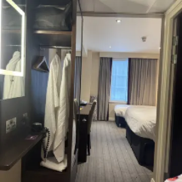 The room was nice and clean, but cramped as set up with an additional single bed. HOWEVER, the room was very cold when we arrived as the heating was off. It took over an hour to warm up. The bathroom remained very cold and appeared to have no working heating at all, and the towel rails were not heated either. We had been travelling all day and didn’t want to go through all the hassle of complaining and being moved. Overall, not the most welcoming stay.