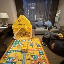 房間很乾凈 很安靜 服務也很周到 辦理入住時貼心送給孩子小童洗護套裝 裏面的塗色本孩子很喜歡 中間工作人員熱情指導如何投屏 臨走時小張 小影 飛飛三位服務員還給孩子送了玩具 孩子非常喜歡 下次還會考慮住在這裏