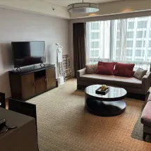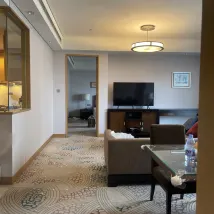 房間十分寬敞,與周圍的五星級酒店價格差不多,卻能享受到套房等待遇,整體性價比還是很高的。房間的各方面都符合五星級酒店的標準。但是酒店門簾太小了,是小賣部級別的;酒店也沒有大堂,像居委會服務站。這些倒不影響體驗,就是挺有意思的。