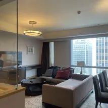 三室兩廳三衞的房型有156個平方,其中一間是小童房,有帶滑梯的高低床和一些玩具,孩子們很喜歡住了三晚,有廚房,因為我不能外面吃飯,所以在房間裏做簡單的吃的真是太重要了。煮麪,炒菜,微波爐熱菜真是太方便了。就是房間衹包含了三份早餐在威斯汀酒店,公寓和酒店是通的,也公用一個游泳池。超出身高的孩子我們就點了外賣。下次能多幾份早餐就更好了。酒店對面有個金融街商場,吃飯很方便人也不多。對於拖家帶口又老又小的家庭很是推薦。