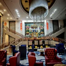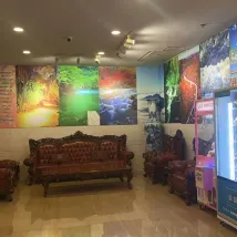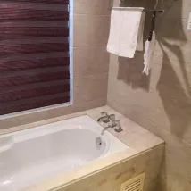 It's located 1km away fr the bus station. It's a bit tough to get to the hotel on foot if you are dragging along a big luggage. It's easy to get a ride hailing from the hotel. We had problem on the electric power on off initially, the front desk quickly sent someone to attend on it. The breakfast has many variety to choose from. Overall, we had a pleasant stay here.