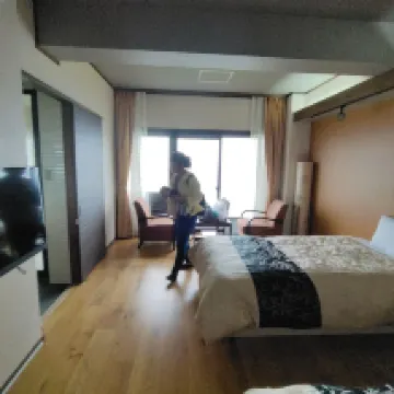 我從來不寫評價的,如果你也是xhs上搜到安利貼過來預訂這家的話,建議你三思。 房間是非常標準的日式房,和我過去去過的富士山,北海道日式温泉酒店的相似,但是這家廁所非常小,小到大概衹有1平方,坐在馬桶上,膝蓋是抵住牆的,我160cm90斤…除此之外,房間黴味非常重,非常非常重! 酒店有兩個湯,一個好像在三樓,普通室內浴場;一個在頂樓,頂樓這個,基本上看不見什麼風景,而且很小,四五個人就已經有點擁擠了。 酒店早餐一般,但晚餐不錯,有兩塊非常好吃的牛肉,還有生魚片(服務員端生魚片上來的時候,有蟲子叮了,馬上給我們換了一盤,還多了幾塊)。但是温泉酒店晚餐好吃是標配吧,算不上優點,也沒有好吃到特地過來住一晚的程度。 而且,這個酒店温泉税要500円,比大部分温泉酒店都要貴,貴的我想説聲你何德何能。 別府是個很小的地方,其實日歸就可以了,大家能別住就別住吧。
