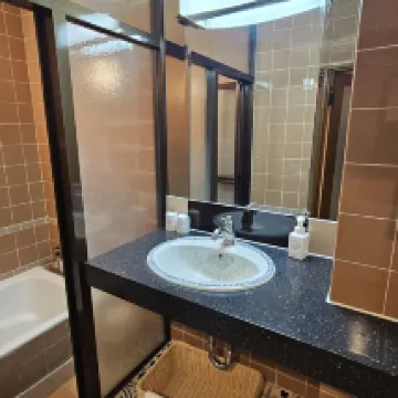 酒店周邊:酒店靠近海灘,但沙子比較臟。周邊人較少,步行3分鐘可以到7/11,購買零食較為方便。往商場方向6分路程可以抵達機場大巴站,也比較方便。 酒店內部:整體是安靜、乾淨、整潔。前台有位台灣小姐姐,辦理好入住,她會提示泡温泉注意事項,自取浴袍,牙刷牙膏,浴帽等用品,晚上6:00-7:00,他們回來鋪榻榻米。温泉分別在3樓和8樓(頂樓),頂樓可以早上4點起來👀日出。設施比較老舊,但不影響功能使用。早餐是傳統日式簡餐。