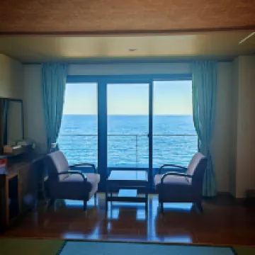 日式的傳統旅店,泡湯設施有點小,海景房可以遙看美麗的海岸線。選擇附晚餐的組合,建議可以跟飯店商討晚餐可提供的選擇,此次用餐內容物稍嫌不夠,有點空虛。晚上飯店大廳有鋼琴演奏,非常驚豔。