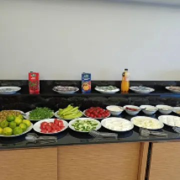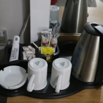 Есть чайник и заварка, но вода в баре платная, есть мыло, гель, шампунь. Чай, кофе. Кровать удобная, одеяло хорошее.