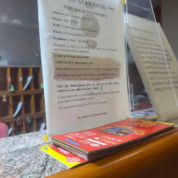 圖片不言而喻。骯髒的老旅館。電視和保險箱不能使用——他們希望你把你的物品留在接待處保管——永遠不會(!)這樣做。床很糟糕,浴室很噁心(!),清潔人員讓我們不舒服 - 看起來很生氣。接待小姐很好。 考慮到你能得到什麼,早餐非常昂貴。第一晚後就退房了,再也不會回來了。 agoda 上的好評與您到達的地方不符。