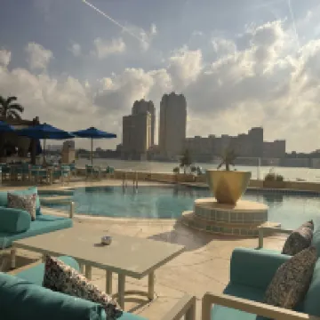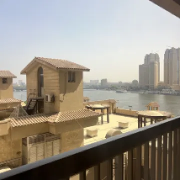 The hotel is located in a quiet and safe area of Cairo. There are restaurants, cafes and supermarkets nearby. It's convenient to reach other places in Cairo by taxi. It has a great view to the Nile. We were very pleased with the quality of the hotel's services.