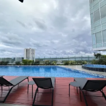 房間很乾凈衞生,保潔打掃的很好,地理位置也很好,大商場樓上,吃飯玩方便,但是一點也不吵。頂樓還有泳池和健身房很乾凈人也少。 被子超級舒服。屋裡網絡很快。 唯一不好的是我們租的車每次出地下停車場的停車票都有問題。這個票是酒店給的。但是總有問題搞的我們出不去。