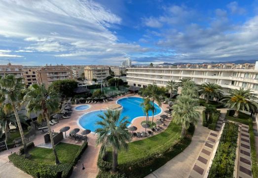 Hotel bien situado, cerca de la playa y del paseo marítimo, la habitación amplia y limpia, el restaurante buffet sin mucha variedad pero cocinada con gusto, estaba todo muy rico, la única pega que podría poner es que la almohada para mi gusto muy baja, y el colchón un poco incómodo, pero por lo demás, es tranquilo, con actividades para niños y mayores tanto en la piscina como en otras áreas del hotel, para resumir un buen hotel, limpio, agradable y buen servicio en general, aunque se note que tiene sus añitos, y lo mismo necesite unos pequeños arreglos