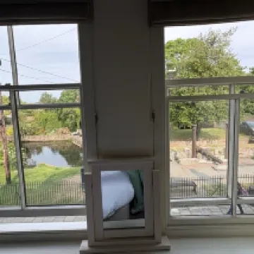 雖然沒有電梯,但工作人員熱情幫忙搬行李上樓。設施偏老舊,但周圍環境安靜,就在河邊,住的很舒服。