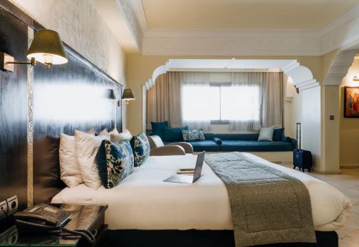 Fancy entrance & decor did not make up for the dismal quality of room accommodation and worse - an absolute lack of care or pride in service delivery from the hotel staff. A major leak in the shower, clogged drains, loose plumbing fixtures and no hot water - we expected may happen in the remote spots we visited in Morocco, but certainly not in a busy big city like Casablanca, for a hotel of this rating level. This place wasn’t worth more than a 1-2star besides the dismal bathroom situation after looking forward to the comfort of a decent hot shower, other small amenities and basic care from the staff on duty was pitiful excuse for hospitality- and a blemish in the hosts we had in other parts if the country who genuinely care about their patrons. In our triple room, tea/coffee service for 1pax in triple room; room service advertised in room brochures was not available, extra towels/ mats to mange the water leaks were not sent; no answer to calls on reception to seek assistance - there was just zero attempt to address any requests, or issues raised. Rude, inhospitable and unhelpful staff, I’ll give this one a wide miss. The beds were at least fairly comfortable and clean, but this establishment certainly proved glossy exteriors don’t endure quality standards or value for extra $ spent towards small comforts.