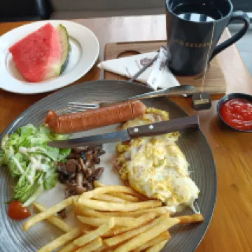 JCo的西式單點早餐,4種菜單只需選擇1種,而不是自助餐模式,只給1份。相當好吃。多芬沐浴露和洗髮精。