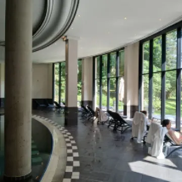 Chambre spacieuse avec tout confort. Petit déjeuner parfait avec grand choix de sucrés et salés. Personnel accueillant et disponible 24h sur 24. Piscine, sauna et hamman à disposition pour les résidents. Nombreux massages et soins à disposition . Parc verdoyant. Restaurant inscrit au guide Michelin.