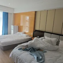住的體驗感最差的一次酒店設施差老舊,哪裡是 23 年裝修的,衞生環境差,服務態度差,我晚上六點多到的,一進電梯就覺得不妙,開房的時候在 18 樓 入住讓我去 17 樓,一進房間我覺的太差了馬上去前台準備退了,告訴你退可以最少交 20 元錢,讓我還要給攜程打電話,真的無語因為晚上🈶️飯局大家都在等我,所以決定湊合住吧,因為是第二天下午五點多的高鐵我説幫我延遲一下時間告訴一小時 30 元,確實無語,我出去其他酒店辦小時房也不在這邊續。