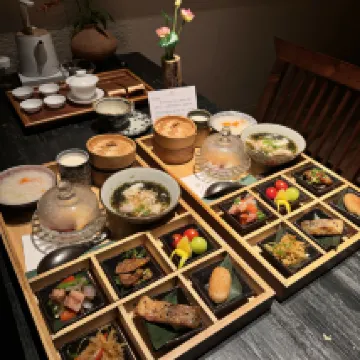 歸墅是我們成都川**天之旅的最後一天入住的酒店 絕對是選對了!為我們的行程畫上完美句號 一進大門像是仙境 應該是老房子改建的酒店 但是很美 服務人員親切協助搬運行李(我們行李很重 但是也沒有抱怨)退房的時候也是發個訊息給管家就來幫我們提了 checkin後坐在美美的茶室 等待房間收拾好 訂的是位於四樓的摘星閣 私隱度相對其他房型應該算比較好的 因為經過三樓時發現有房型的庭院其實我們經過都看得到 管家親切為我們介紹房內設施與設備 浴巾提供的是一次性的 配備免治馬桶 洗浴的空間也蠻大的 洗手枱 馬桶 與洗沐空間都分開 對於四人房來説非常方便 入住後管家説五點前會提供下午茶 下午茶雖然不是非常豐盛 但味道也算可以 重點是很好拍 因為我們的房間算是獨立空間所以沒有隔音不好的問題 床好睡 備品大部分都很足(除了洗髮精沐浴乳那些衹有一套 對於四個人來説相對不足) 房間內還有提供各種免費飲品 泡茶區 還有付費紅酒 早餐豐盛 也漂亮 味道中等 衹是看到這份漂亮的早餐與手寫卡片 心情都好了 唯一是房間內的浴缸感覺不太好所以就沒泡了 房內屋頂陽台很特別 酒店附近非常多按摩 采耳 便利商店 酒吧 手信店都有 很熱鬧方便 非常推薦入住(衹是重視私隱的話房型可能要慎選)